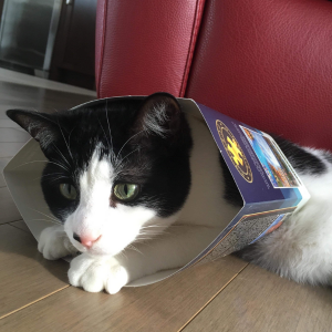 Lorsque j’étais petite j’avais une petite tente de princesse, et il avait l’habitude de venir me trouver à l’intérieur. Cependant il a grandit rapidement; au final il restait coincé à l’intérieut de la tente, et il se promenait avec dans la maison. La tête sortie par la "porte" et la queue sortie par la fenêtre!